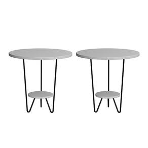 Kit 2 Mesas Laterais Redonda Industrial Italy Ferro Preto e Tampo Branco