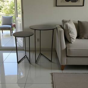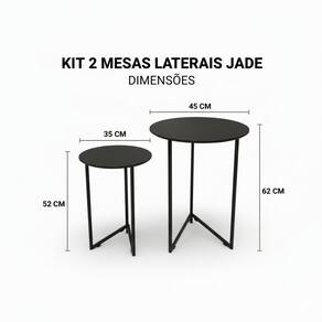 Kit 2 Mesas Laterais Jade: Estilo Industrial e Sofisticação para sua Casa. Transforme a decoração da sua sala de estar ou quarto com o Kit de Mesas Laterais Jade. Com um design moderno e minimalista, este conjunto é a união perfeita entre funcionalidade e estilo. A combinação do metal com acabamento texturizado e o MDF acetinado traz um ar contemporâneo e sofisticado ao ambiente. Por que escolher o Kit Jade? Design Exclusivo: A base em metal possui pintura na cor Preto Martelado, uma textura premium que garante maior resistência a riscos e um visual único, diferente das pinturas lisas comuns. Acabamento Impecável: Os tampos em MDF possuem acabamento em Preto Acetinado, proporcionando um toque suave e elegância discreta (sem aquele brilho excessivo). Versatilidade: Use-as juntas (como mesas de ninho) para criar níveis diferentes na decoração, ou separadas (uma em cada lado do sofá ou como mesa de cabeceira). Estrutura Robusta: Pés em metal reforçado com design triangular que garante total estabilidade. Ficha Técnica e Dimensões: Este kit contém 02 mesas com alturas diferentes: Mesa Maior: Altura: 62 cm Diâmetro do Tampo: 45 cm Material do Tampo: MDF Preto Acetinado, Material da Base: Tubo de Metal Preto Martelado; Mesa Menor: Altura: 52 cm Diâmetro do Tampo: 35 cm Material do Tampo: MDF Preto Acetinado, Material da Base: Tubo de Metal Preto Martelado. O Kit Mesas Jade é a escolha certa para quem deseja unir funcionalidade, durabilidade e sofisticação em um só produto. IMAGENS MERAMENTE ILUSTRATIVAS! Marca: Não Informado