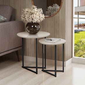 Kit 2 Mesas Lateral Redonda Jade Pé De Aço Estilo Industrial