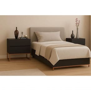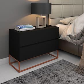 Transforme seu quarto com o toque moderno do Eros! Com acabamento premium, duas gavetas espaçosas e pés de ferro no estilo industrial, une beleza, praticidade e resistência.