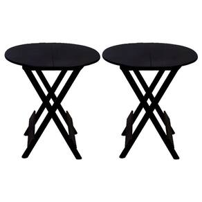 Kit 2 Mesas Redondas Dobráveis Em Madeira Maciça 70x70 Preto Ideal Para Bares E Restaurantes