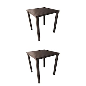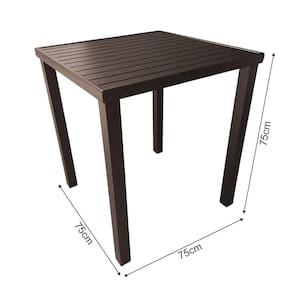 AS IMAGENS SÃO MERAMENTE ILUSTRATIVAS E PODEM SOFRER VARIAÇÕES DE COR E PEQUENOS DETALHES DE ACORDO COM O SEU MONITOR, ILUMINAÇÃO DO AMBIENTE E ATÉ MESMO A SUA PERCEPÇÃO VISUAL.Kit 2 Mesas Tampo Ripado Quadrada 0.75x0.75m AlumÃnio Marrom