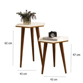 Kit 2 Mesas Tampo Sextavado Pés Palito Branco/Marrom 2 mesas lateral e apoio tampo sextavado pés palito retrô elegance cor off white com freijó - comprar móveis em casa Kit 2 mesas lateral e apoio, pés palito, é produto exclusivo, embalado individualmente com caixa reforçada nas laterais para não ocorrer no transporte. Vendido pela comprar móveis em casa para deixar seu ambiente mais bonito e sofisticado procure nossas redes sociais e confira todos nossos produtos e qualidade de atendimento : Dimensões do produto montado: Mesa lateral: Altura: 47cm Largura: 43cm Profundidade: 49cm Mesa apoio: Altura: 62cm Largura: 43cm Profundidade: 49cm Obserações: Estilo retrô Tampo sextavado Produzido em mdf de 15mm Pés de madeira maciça Pintura: Produto com pintura ultravioleta, maior resistência e durabilidade, além de proporcionar um acabamento perfeito para o produto. Instruções de uso e manutenção: Limpar apenas com pano levemente umedecido com água Montagem: Este produto acompanha manual de instrução detalhando passo a passo de como montar. A montagem do produto é de fácil entendimento, mas não deixamos de ressaltar que a mesma deverá ser feita por um profissional, para que não ocorram danos no produto. Atenção: a montagem não é oferecida pela comprar moveis em casa, a montagem do produto é por conta do comprador. Fotos meramente ilustrativas não acompanham os produtos de decoração. Observações importantes: O produto é lacrado e novo com embalagem . A é de 60 dias por defeitos de fabricação. Em caso de erro de montagem, uso inadequado do produto, ou outros acidentes do gênero esta não será acionada. Se por eventuais circunstâncias o produto apresentar defeitos de fabricação, o cliente deverá imediatamente entrar em contanto conosco com o manual de montagens em mãos e com o numero da peça que venha estar que sofreu danos. A comprar moveis em casa ira imediatamente providenciar uma nova peça o mais rápido possível. Se no ato de recebimento do produto o cliente verificar que o produto não está em prefeito estado, principalmente por ocasião de transporte irregular, o cliente deverá recusar o recebimento do produto e entrar em contato para resolver o problema. Todo produto estará acompanhado de um manual de instrução para a montagem do produto. As imagens são meramente ilustrativas atenção, se atente a politica de troca ou devolução da empresa, pois todo produto quando houver necessidade de troca ou cancelamento deve ser desmontado, embalado em uma caixa e postado nos correios com código de postagem sem custo para o cliente Ean: 7801074500587