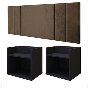 A Cabeceira Luana oferece um toque de requinte ao ambiente, enquanto as mesas de cabeceira suspensas são perfeitas para otimizar o espaço, facilitando a organização e a limpeza.