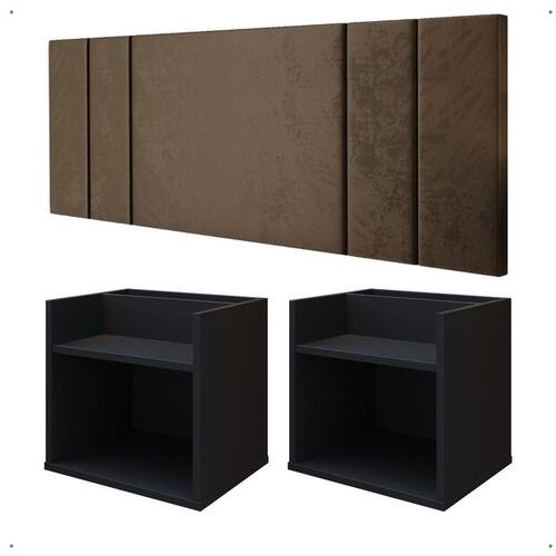 Kit 2 Mesinha Pequena Suspensa Madri Apoio Lateral Cabeceira Moderna Cama Box Casal Queen 1,60 Luana - Marrom