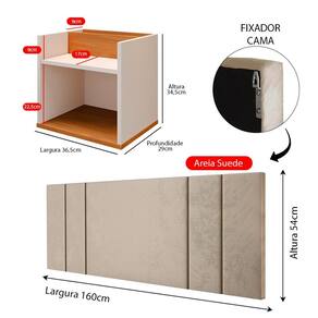 A Cabeceira Luana oferece um toque de requinte ao ambiente, enquanto as mesas de cabeceira suspensas são perfeitas para otimizar o espaço, facilitando a organização e a limpeza.