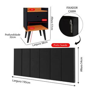 Kit 2 Mesinhas Apoio Decore Nicho Pés Retrô Cabeceira Suspensa Júlia Cama Box King 1,95 - Lojas RPM - Preto