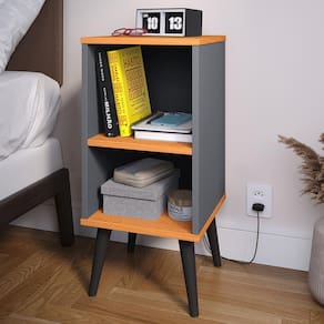 A Mesa de Cabeceira Charme possui um design retrô com pés palito que trazem beleza e leveza ao espaço. O nicho aberto é perfeito para acomodar livros, objetos decorativos ou itens de uso diário.