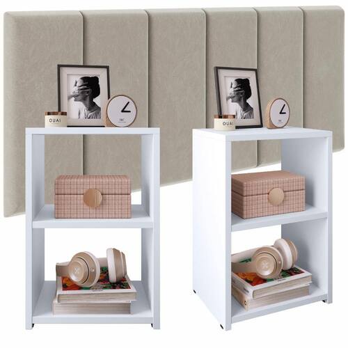 Ideal para quem valoriza organização e praticidade sem abrir mão de estilo, o kit traz duas mesas de cabeceira Bella e a sofisticada Cabeceira Júlia. As mesas foram cuidadosamente projetadas para trazer modernidade e funcionalidade, com uma prateleira espaçosa para acomodar livros e objetos essenciais, mantendo tudo sempre ao alcance. A Cabeceira Júlia, com seu design modular e estofado macio, proporciona conforto extra para momentos de leitura ou maratona de séries, além de acrescentar um charme incomparável ao seu ambiente.