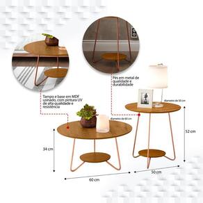 Esse conjunto dispõe de 1 mesa centro e 1 mesa apoio, ideais para decorar o ambiente e também mantê-lo organizado, visto que as mesinhas podem ser utilizadas para acomodar livros, itens decorativos e muito mais.