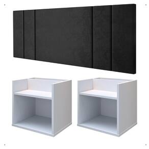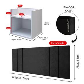 Kit 2 Mesinhas Suspensa Prateleira Nicho Madri Retrô Branco Cabeceira Estofada Módulo Cama Box Casal Luana Queen 1,60 Preto Suede