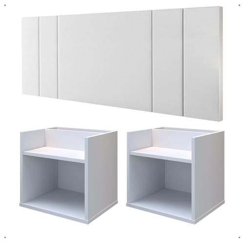 A Cabeceira Luana oferece um toque de requinte ao ambiente, enquanto as mesas de cabeceira suspensas são perfeitas para otimizar o espaço, facilitando a organização e a limpeza.