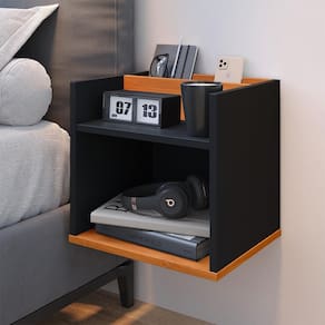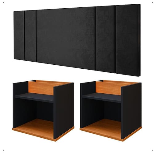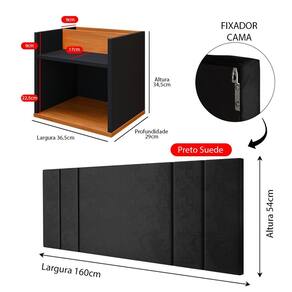 Kit 2 Mesinhas Suspensa Prateleira Nicho Madri Retrô Cabeceira Estofada Módulo Cama Box Casal Luana Queen 1,60 Preto/Cinamomo - Preto