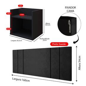 A Cabeceira Luana oferece um toque de requinte ao ambiente, enquanto as mesas de cabeceira suspensas são perfeitas para otimizar o espaço, facilitando a organização e a limpeza.