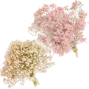 2 Mini buquês da flor Gypsophila mosquitinho , natural desidratada, nas cores branco natural e cor de rosa bebê.. Com aproximadamente 18 cm de diâmetro e 22 cm de comprimento. São enviados prontos, no tamanho ideal para garrafinhas leite de coco ou vasinhos. *últimas fotos são ilustrativas, vasinhos não acompanham os buquês. Marca: Floricultura Frutaflor