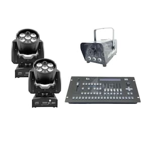 Kit 2 mini moving wash 7x12w + máquina de fumaça 600w + mesa pilot