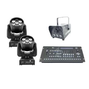 Kit 2 mini moving wash 7x12w + máquina de fumaça 600w + mesa pilot