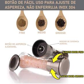 Nada melhor que temperos fresquinhos e moídos na hora pra dar aquele toque especial em seus pratos. Imagina ter em sua cozinha 1 moedor de inox que traz total elegância em sua cozinha além de possuir uma qualidade incrível. Com este moedor, você consegue ajustar se quer moer Fino ou Grosso, ideal para moer Pimenta do Reino branca ou preta, Pimenta Rosa, Pimenta Jamaica, Pimenta Síria, Pimenta Calabresa seca, Sal entre outras. Fabricado em Aço Inoxidável o moedor apresenta alta durabilidade, não enferruja, ótimo acabamento e design arrojado, dando um toque de elegância para decorar sua cozinha, conta com engrenagens de alta resistência que proporcionam maior durabilidade. Produto indispensável na cozinha moderna, extremamente prático e aprovado pelos grandes chefes. Com muita rapidez, ele moe o tempero na hora, podendo temperar diretamente em seu prato, na medida em que deseja.