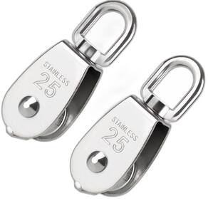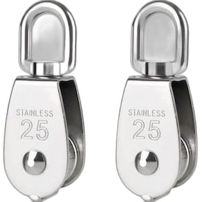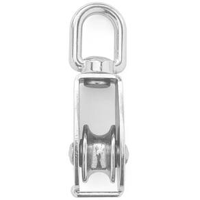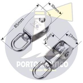 INFORMAÇÕES ADICIONAIS: Material: Aço inox 316. Tamanho: N25. Carga máxima: 150 kg. Dimensões: 85mm x 30mm x25mm x23mm Contém alça destorcedor. Alta resistência e durabilidade. Projetado para pendurar objetos de peso para aliviar cargas Aplicação: Amplamente utilizado no esforço de tração de cabos de aço ou outras ferramentas de cabos. Uma corda, cabo, correia ou corrente geralmente passa sobre a roda e dentro da ranhura, se houver