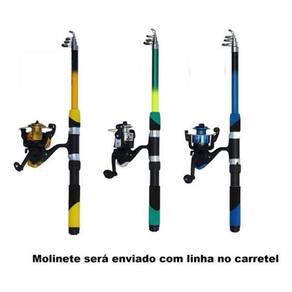 Kit será enviado com os mesmos itens das fotos podendo ter diferente apenas nas cores, e a linha será enviada enrolada ao carretel do molinete.