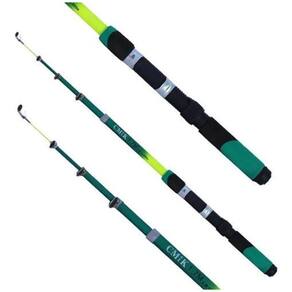 Vara Fabricante: cmik Modelo: telescópica Material: fibra de vidro Utilização: molinete Tamanho: 1,70m Potência: leve Três passadores + ponteira Medida da vara recolhida e com o protetor de ponta 48,00 cm Peso: 115 gramas Disponível nas cores: verde / azul / vermelho / amarelo