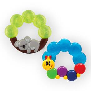 Kit 2 mordedores infantil argola com agua textura macia massagear gengiva bebe buba Cor: coala - centopeia Kit com 2 unidades.
