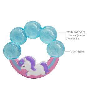 Kit 2 mordedores infantil argola com agua textura macia massagear gengiva bebe buba Cor: unicornio - unicornio Kit com 2 unidades.