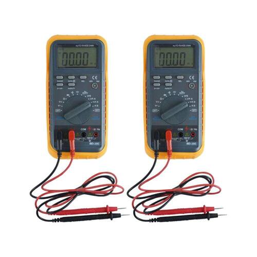 KIT 2 MULTÍMETRO DIGITAL MOD.MD-390 3/4 DÍGITOS PARA TENSÃO, CORRENTE, RESISTÊNCIA, CAPACITÂNCIA, DIODO, FREQUÊNCIA E TRANSISTOR (HFE) DESCRIÇÂO: Este multímetro é um instrumento de medição profissional com escala automática e display de cristal líquido de 3 ¾ dígitos, capaz de executar as seguintes funções: APLICAÇÔES: Medição de tensão contínua (DC) e alternada (AC) Medição de corrente contínua (DC) e alternada (AC) Medição de resistência Medição de capacitância Medição de freqüência Teste de transistor e diodo Teste de continuidade audível INFORMAÇÕES DE SEGURANÇA: Este multímetro foi projetado de acordo com as normas IEC-1010 relativas à instrumentos de medição eletrônicos com categoria de sobre tensão (CAT II) poluição 2. ESPECIFICAÇÕES TÉCNICAS: Escalas: Tensão DC: 400mV, 4V, 40V, 400V, 1000V Exatidão: ± (0,5% ±4) Tensão AC: 400mV, 4V, 40V, 400V, 750V Exatidão: ± (0,8% ±6) Corrente DC: 400µA, 4mA, 40mA, 200mA, 10A Exatidão: ± (1,0% ±8) Corrente AC: 400µA, 4mA, 40mA, 200mA, 10A Exatidão: ± (1,5% ±8) Resistência: 400¿, 4k¿, 40k¿, 400k¿, 4M¿, 40M¿ Exatidão: ± (0,8% ±1) Capacitância: 4nF, 40nF, 400nF, 4mF, 40mF, 200mF Exatidão: ± (5,0% ±3) Freqüência: 40Hz, 400Hz, 4kHz, 40kHz, 400kHz, 4MHz, 30MHz Exatidão: ± (1,2% ±3) Display de Cristal Líquido de 4 dígitos Categoria de Segurança: CAT-II 1000V Função Duty Cicle % Teste de transistor Teste de diodo Continuidade audível Data-hold Desligamento automático Escala automática Alimentação: 2 pilhas AA de 1,5V Dimensões: Aprox. 91 x 189 x 32 mm Peso: 280g ACESSÓRIOS FORNECIDOS: 2 - Multímetro 2 - Pontas de Prova 4 - Pilhas de 1,5V Holster Manual de Instruções