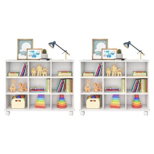 Portanto, o Kit 2 Nichos Organizadores Multifuncionais com Rodízios Toys vem para facilitar esse processo! Ele é um produto multifuncional que pode ser utilizado para ambiente de quarto infantil ou Escritório Home Office, contribuindo para a otimizar o espaço com a organização do da melhor forma possível. Possui 4 rodízios e 9 Nichos com amplo espaço no interno. Estrutura em MDP para mais durabilidade e resistência.