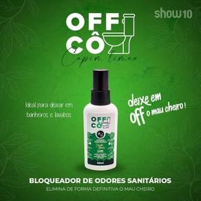 Deixe em off o mau cheiro! Chegou o Offcô, com fragrância de Capim Limão, o Offcô é um bloqueador de odores sanitários, que elimina de forma definitiva o mau cheiro. Esta versão com 60ml é ideal para deixar em banheiros e lavabos.