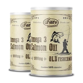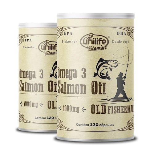 Kit 2 ômega 3 óleo de salmão old fisherman da unilife Ômega 3 óleo de salmão old fisherman da unilife é um suplemento a base de óleo de salmão, rico em ômega 3, é um produto totalmente natural capaz de proporcionar incríveis benefícios a sua dieta, já iremos falar diretamente aos atletas que buscam ou definição muscular é necessario suplementar ômega 3 mas por que Ômega 3 é encontrado em abundancia em peixes frios, no brasil os únicos que encontramos é o salmão em cativeiros, ou seja não é a mesma quantidade que encontramos em aguas geladas, a unilife utiliza o óleo de salmão em sua composição, nos trazendo a quantidade encontrada em peixe de aguas frias, o que é a ideal para a nossa melhor qualidade de vida. Quais são os benefícios do ômega 3 óleo de salmão old fisherman da unilife São diversos as qualidades deste incrível produto, além do ômega 3 óleo de salmão old fisherman da unilife ser muito atrativo para a qualidade de vida, pode ser muito atrativo a sua dieta e perca de peso. Como utilizar o ômega 3 óleo de salmão old fisherman da unilife A fabricante unilife recomenda o consumo de 2 a 4 cápsulas diárias, após as principais refeições do dia, o produto deve ser consumido juntamente com líquidos. A equipe da edin adverte, o consumo desse produto deve ser feito com um acompanhamento nutricional adequado, ultrapassar a dose diária recomendada pelo fabricante deve ser somente feito por um . Ingredientes: Óleo de salmão, gelatina bovina, umectante glicerina e água Alergenicos: Contém oleo de salmão, e óleo de peixe Marca: Não Informado