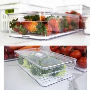 Com os organizadores de geladeira da linha Clear Fresh, você terá organização e irá conservar e manter o frescor de seus alimentos por mais tempo, a tampa com ventilação ajustável mantém o nível de umidade ideal para cada tipo de alimento, mantendo-os frescos por mais tempo. Possui bandeja de drenagem que impede que a umidade acumulada se mantenha no alimento, evitando o murchamento e deterioração precoce. São empilháveis para otimizar ainda mais seu espaço de armazenamento.