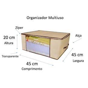 02 dois unidade de Organizador Guarda Roupa Multiuso 45 comprimento x 45 largura x 20 altura Marfim Os Organizadores Multiuso são ótimos para organizar peças volumosas que ocupam muito espaço. Ideal para organizar coberta, edredom, roupa de lã, cachecol, luva, gorro, roupa de outra estação, vestido de noiva, roupa de bebê, travesseiro, toalha de banho, roupa de cama, toalha de mesa, roupa de festa, casaco de viagem volumoso, dentre outros itens. Com o Organizador de Guarda Roupa Multiuso você deixará suas peças todas organizadas. Pode ser guardado no guarda roupa e até debaixo da cama. O organizador multiuso de guarda-roupa te ajudará no dia a dia, é compacto e ocupa pouco espaço. Excelente também para ser em organização de espaço por Personal Organizer. Agora existe um jeito moderno para deixar tudo organizado de forma fácil e rápido, otimizando o seu tempo Modelo: Organizador Guarda Roupa Multiuso Material: TNT, Plástico no Visor e Zíper Duplo para fechar Visor: Parte frontal transparente Medida Comprimento x Largura x Altura : 45 x 45 x 20 cm Contém: 2 Organizador Multiuso Marca: Não Informado
