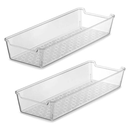 Kit 2 Organizadores de Gavetas Plástico 34x12,5cm Maquiagem Escritório Uz Transparente.