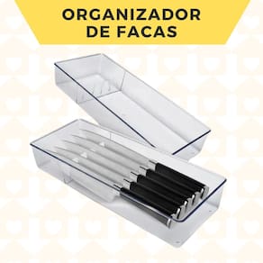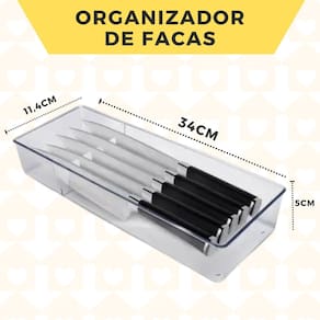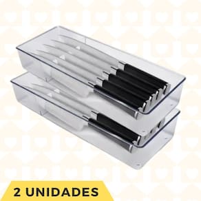 CONTEÚDO DA EMBALAGEM: 02 Organizadores com 5 divisórias segundo as descrições acima. NÃO VEM ACOMPANHADO DE FACAS, IMAGENS MERAMENTE ILUSTRATIVAS.