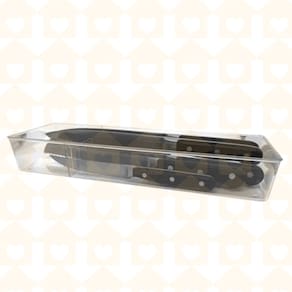 ORGANIZADOR FACA – 5 COMPARTIMENTOS Tenha o organizador de facas em acrílico e mantenha suas facas sempre organizadas, ao alcance das mãos e evite acidentes na cozinha, já que cada faca fica isolada das outras, além de deixar o preparo de alimentos muito mais prático e ágil. Com design moderno e elegante, o organizador também embeleza o ambiente. Informações técnicas: Dimensões: 34CM x 11,4CM x 5CM Peso: 187G Composição: Acrílico/Poliestireno Cor: Transparente