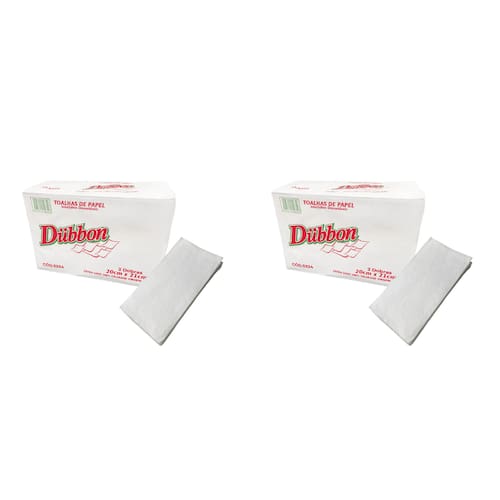 Kit 2 Pacotes de Papel Interfolha Dubbon 100% Celulose 20x21cm – 2 Dobras, Folha Simples, 20g