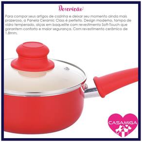 Para compor seus artigos de cozinha e deixar seu momento ainda mais prazeroso, a Panela Ceramic Class é perfeito. Design moderno, alças em baquelite com revestimento Soft-Touch que garantem conforto e maior segurança.