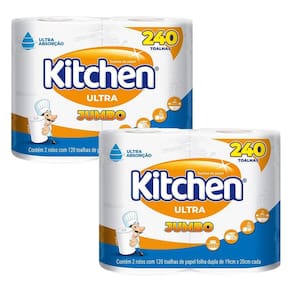 O Kit contém: 2 rolos de Papel Toalha Kitchen Ultra Jumbo com 240 Folhas cada.