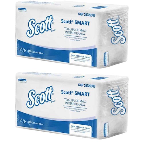 Kit com 2 papel toalha scott 2 dobras 21,5x19,2cm com 1000 100% celulose Kit com 2 fardos de: Papel toalha scott 2 dob. 21,5x19,2cm com 1000 cada 100% fibras virgens Características do produto Exclusiva tecnologia kimberly clark, as folhas são práticas e modernas Apenas uma folha é necessário para secar as mãos, reduzindo assim o consumo desnecessário Possui alto poder de absorção e resistência, não desmancha na mão Especificações - macias e absorventes, com resistencia umida - sao gofradas, propiciando assim maior maciez e volume - as toalhas sao cortadas uma a uma com sistema ¡§clean-cut¡¨ e posteriormente intercaladas. Nao sao emendadas, saem uma a uma do toalheiro, minimizando desperdicios e aumentando a produtividade - com resistencia umida, nao esfarelam, nao deixam residuos nas maos ou no rosto - as toalhas sao totalmente protegidas, os macos sao embalados individualmente - lote de fabricacao impresso nos macos - sao 100% biodegradaveis - 2 dobras - folha simples com 26/28 de gramatura. - 1000m folhas (4 x 250) - produto com a certificação fsc® Material 100% fibras virgens Dimensões Dimensão: 21,5 x 19,2 cm