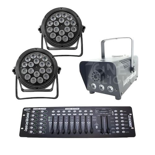 Kit 2 par led slim rgbw 18x12w + máquina de fumaça 600w + mesa dmx 512