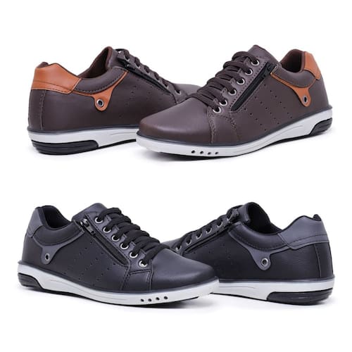 Kit 2 Pares Sapatênis Masculino Fechamento Elastico e Ziper - 38 - Marrom Cacau