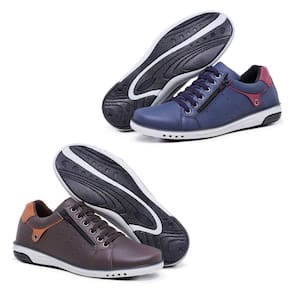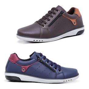 Kit 2 Pares Sapatênis Masculino Fechamento Elastico e Ziper - 37 - Marrom