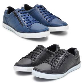 Kit 2 Pares Sapatenis Masculino Ziper Cadarço Confortável - 39 - Azul Marinho