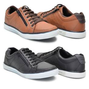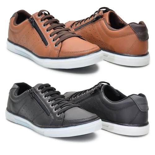Kit 2 Pares Sapatenis Masculino Ziper Cadarço Confortável - 43 - Marrom Cacau