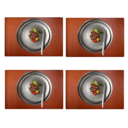 Kit 2 pçs jogo americano mesa jantar sala restaurante couro1 Cor: caramelo Tamano: 43x30 Jogo americano couro retangular + porta copos