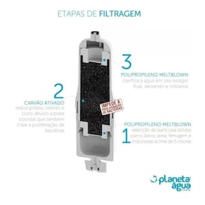 Kit 2 pçs refil pró life para filtro de água soft everest 1013 02 refis planeta água pró life para purificador de água soft everest - 1013 Fabricante planeta água código 1013 O refil para o purificador de água planeta água tem um sistema exclusivo de filtragem, que deixa a água do seu purificador pura e cristalina e é capaz de eliminar impurezas sólidas como barro, ferrugem, fungos e algas, além de eliminar odores e sabores indesejáveis da água. Por que este produto - fácil de instalar - elimina odores - elimina sabores desagradáveis - retém partículas barro, areia, ferrugem e sedimentos - reduz cloro - 3 etapas de filtragem - produto a ser utilizado com água potável, de acordo com a portaria ms 2914 - este produto produzido conforme a norma abnt nbr 16.098:2012 - embalagem produzida a partir de fontes responsáveis certificada pelo fsc - muito mais economia. 1 refil = 200 galões de 20 litros de água mineral ou 8000 garrafas pet de 500 ml Este refil serve para aparelhos soft everest. Classificação de desempenho: - com redução de cloro livre; - retenção de partículas; - sem eficiência bacteriológica; - certificação abrace abnt nbr 16098 - empresa certificada iso 9001 Este elemento filtrante destina-se ao uso com água que atenda a legislação vigente; Atenção: pode ser que ao abrir o filtro pela primeira vez, após a troca, é comum sair uma água preta nos primeiros litros, devido ao pó do carvão ativado, espere passar uns dois litros de água que estará pronto para o consumo. : Este produto possui contra defeitos de fabricação pelo período de 90 dias, mediante a apresentação de . Pode haver saturação antes do previsto vida útil em litros de água filtradas , dependendo das condições da água de cada região, como excesso de barro, areia, ferrugem e outras impurezas. Validade: Validade do produto de 4 anos, antes da instalação e desde que o produto esteja conservado lacrado na embalagem, protegido de calor, umidade, poeira e outras contaminações; Marca: Não Informado