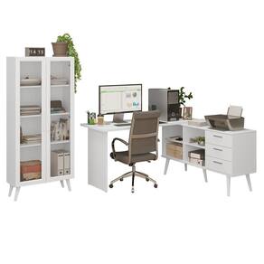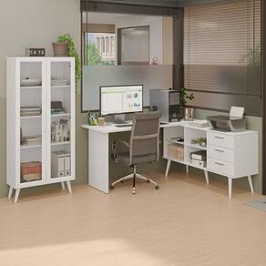 A Mesa de Escritório em L Lisboa Madesa e o Armário Multiuso são a combinação ideal para seu escritório ou home office, unindo funcionalidade e estilo!