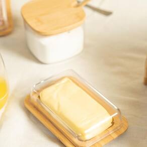 Aspen Decor F6388 Kit 2 peças Mesa Posta Açucareiro e Mantegueira OU Bambu O Açucareiro e a Mantegueira transforma a experiência de servir à mesa, para uma rotina com mais conforto e conexão com o lar. O mix de materiais agrega funcionalidade e personalidade ao ambiente. A tampa de bambu promove a sustentabilidade de um material 100% renovável, e traz sofisticação para decorar a sua casa. A Linha Sense ressignifica o ato de servir e valoriza os pequenos momentos, trazendo elegância e bem-estar para a sua casa do café da manhã ao jantar. Açucareiro Altura 9cm Largura 10.5cm Profundidade 11.5cm Peso 150g Material Bambu Mantegueira Altura 5cm Largura 10.5cm Profundidade 16cm Peso 140g Material Bambu Aviso Importante: -as cores dos produtos podem variar entre as imagens mostradas acima ou fotos da embalagem de acordo com calibragem de seu monitor ou smartfone'. ATENÇÃO: - Os objetos que ambientam as fotos não acompanham o produto. Imagens meramente ilustrativas. Observação: - Atenção ao tamanho do produto, ele é um encanto E como descrito acima. Confira as dimensões do produto no momento da compra e se certifique de que é o produto que deseja comprar. Marca: Não Informado