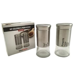 Conjunto com duas peças, sendo um saleiro e um pimenteiro em vidro e Inox, perfeito para ser usado no seu dia a dia e servir a mesa com praticidade e requinte Além de ser lindo para deixar junto aos seus utensílios de cozinha, decorando e deixando-a mais charmosa